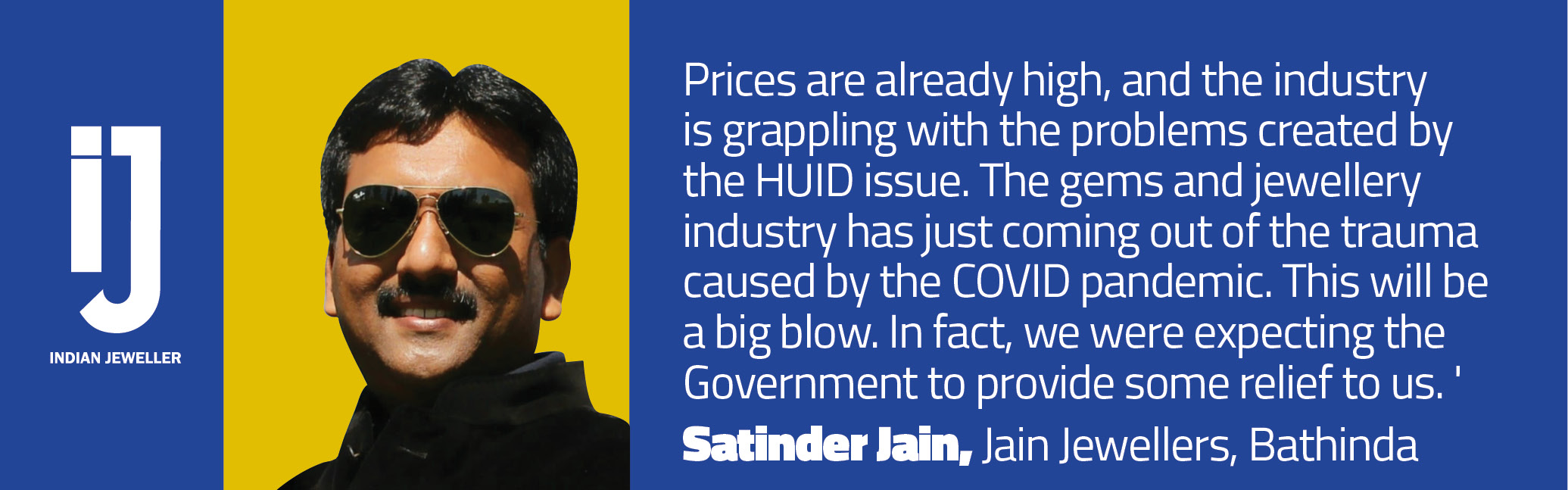 Industry players feel the move is very ill-advised. Explains Satinder Jain, Jain Jewellers, Bathinda, “This is very discouraging. Prices are already high, and the industry is grappling with the problems created by the HUID issue. If this extra burden comes on us, it will disturb the business greatly. The gems and jewellery industry is just coming out of the trauma caused by the COVID pandemic. This will be a big blow, if it comes through. In fact, we were expecting the Government to provide some relief to us. We are already abiding by the rules. What else are we asking for, other than ease of doing business?”