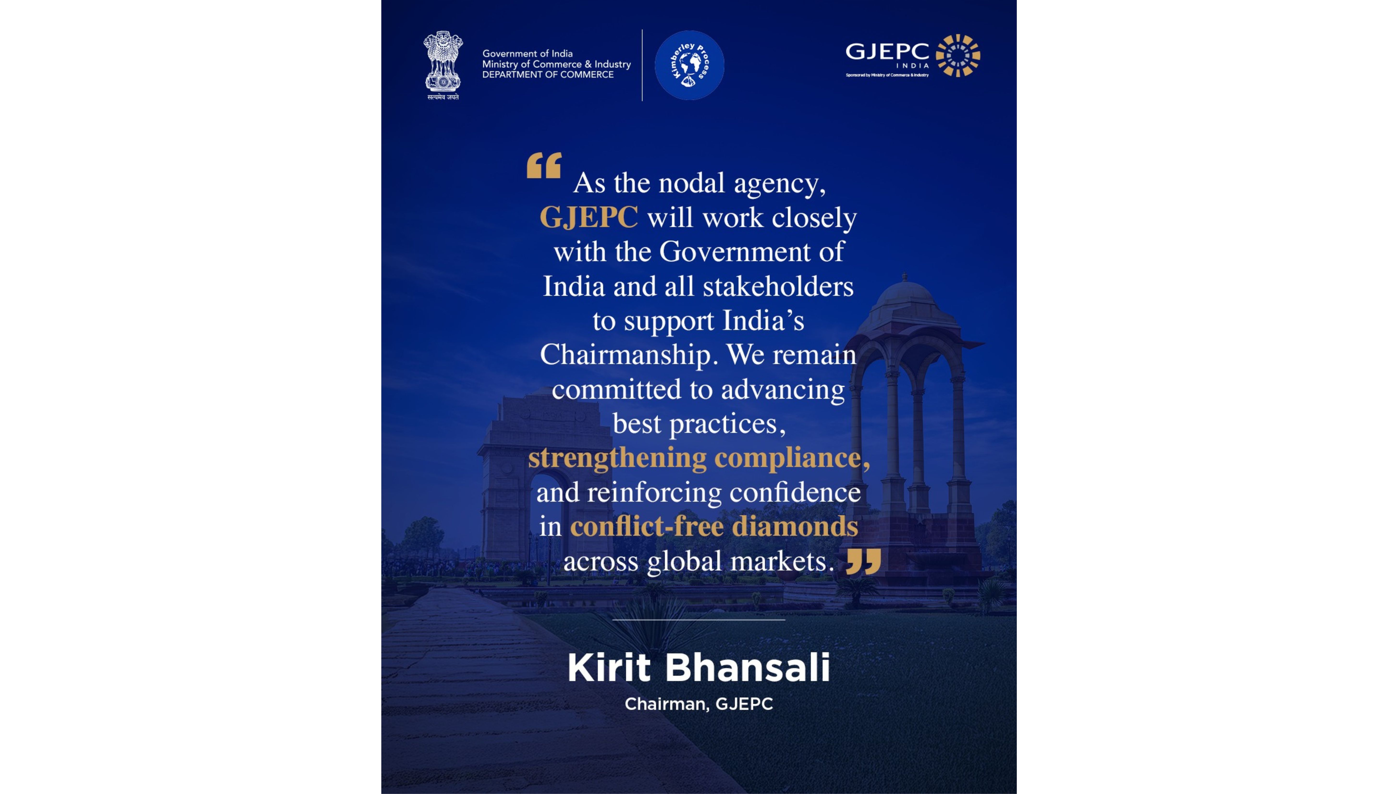 GJEPC stated it looks forward to working with governments, international trade bodies and civil society to support India’s leadership and strengthen the long-term integrity of the global diamond industry.