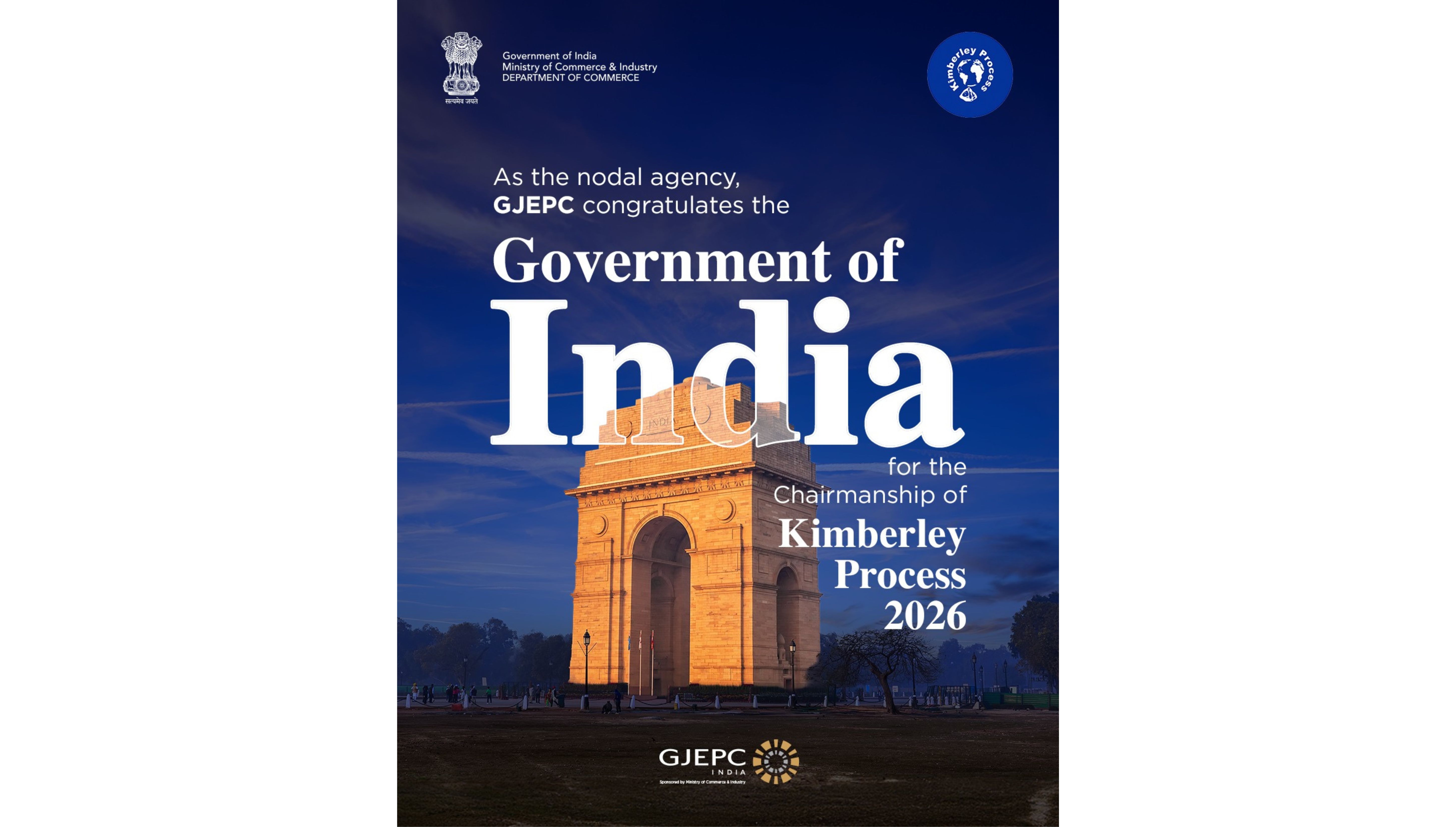 The Gem & Jewellery Export Promotion Council (GJEPC), India’s nodal agency for the Kimberley Process (KP), has welcomed India’s election as Chair of the Kimberley Process Certification Scheme (KPCS) for 2026.