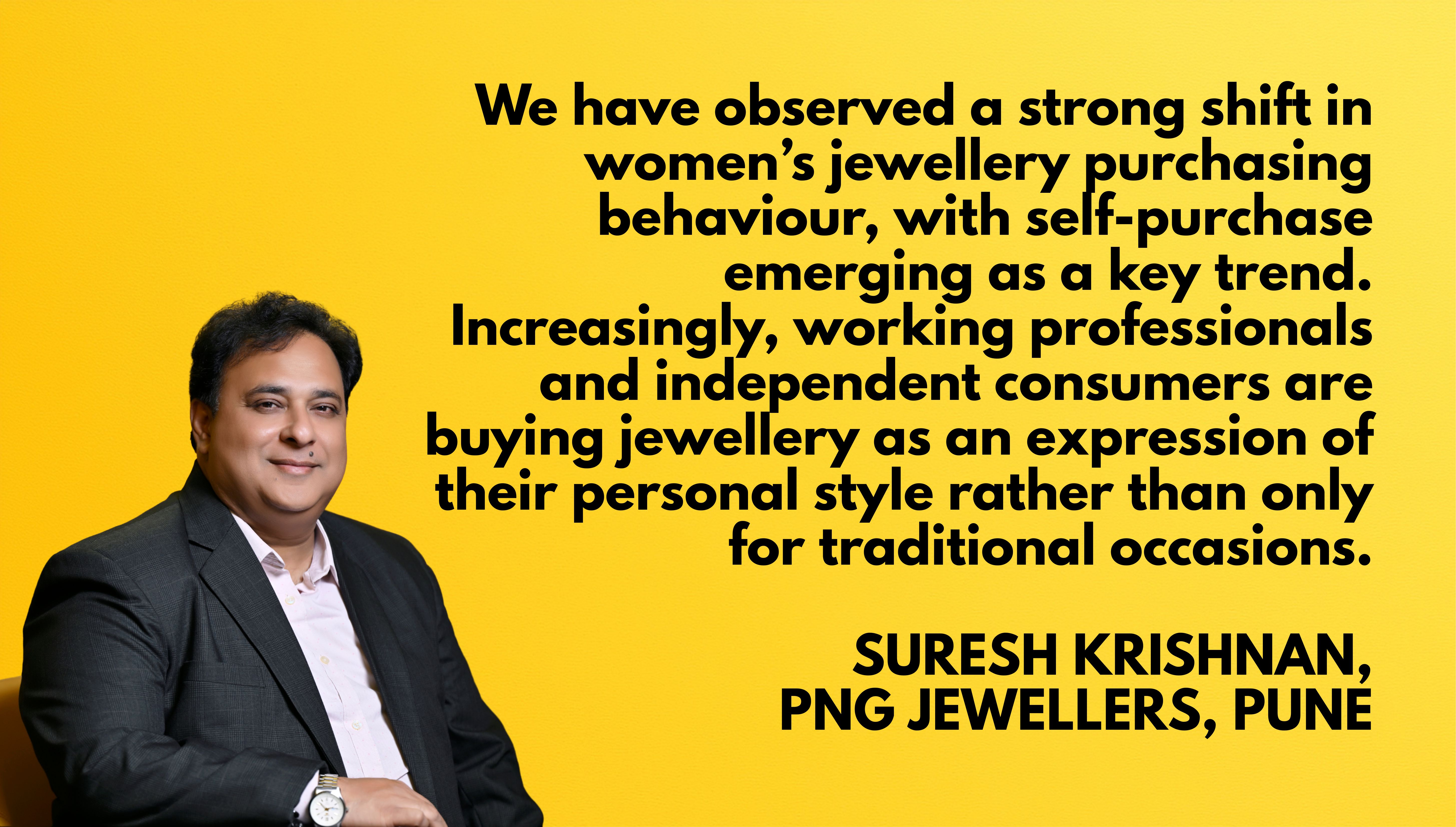 Suresh Krishnan, PNG Jewellers, Pune, says the trend towards independent buying is particularly noticeable among working professionals. “At PNG Jewellers, we have observed a strong shift in women’s jewellery purchasing behaviour, with self-purchase emerging as a key trend. Increasingly, working professionals and independent consumers are buying jewellery as an expression of their personal style, rather than only for traditional occasions.”