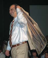 Says Prabir Chatterjee, MD, Adora Diamond Jewellery, “Jewellery and accessories are no longer incongruous with a man’s personality. Today, men have realized the need to present themselves distinctly. MAN’s EGO is Adora’s response to this growing need.â€%%To exhibit the designs, the first to come on the ramp was Manish Pethani. 2nd to come was Sanjay Kothari, ex-chairman GJEPC.